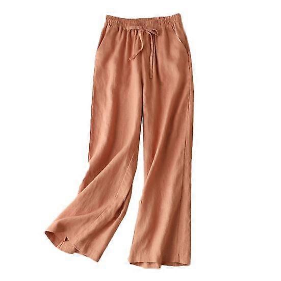 Women Summer Pants Elastic Waist Adjustable Drawstring Solid Color Loose Fit Long Trousers Straight Wide Leg Casual Pants with Pockets
