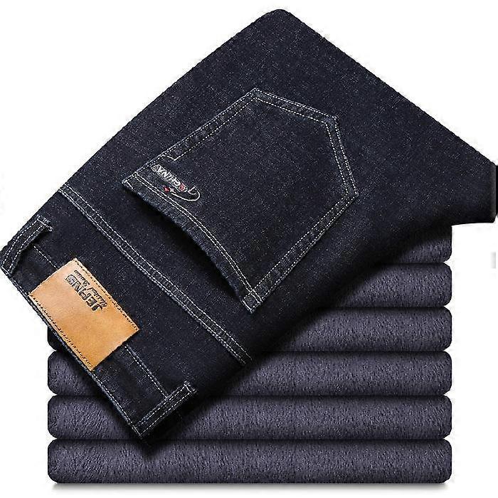Men's winter stretch padded jeans men's thickened loose straight warm with fleece men's trousers