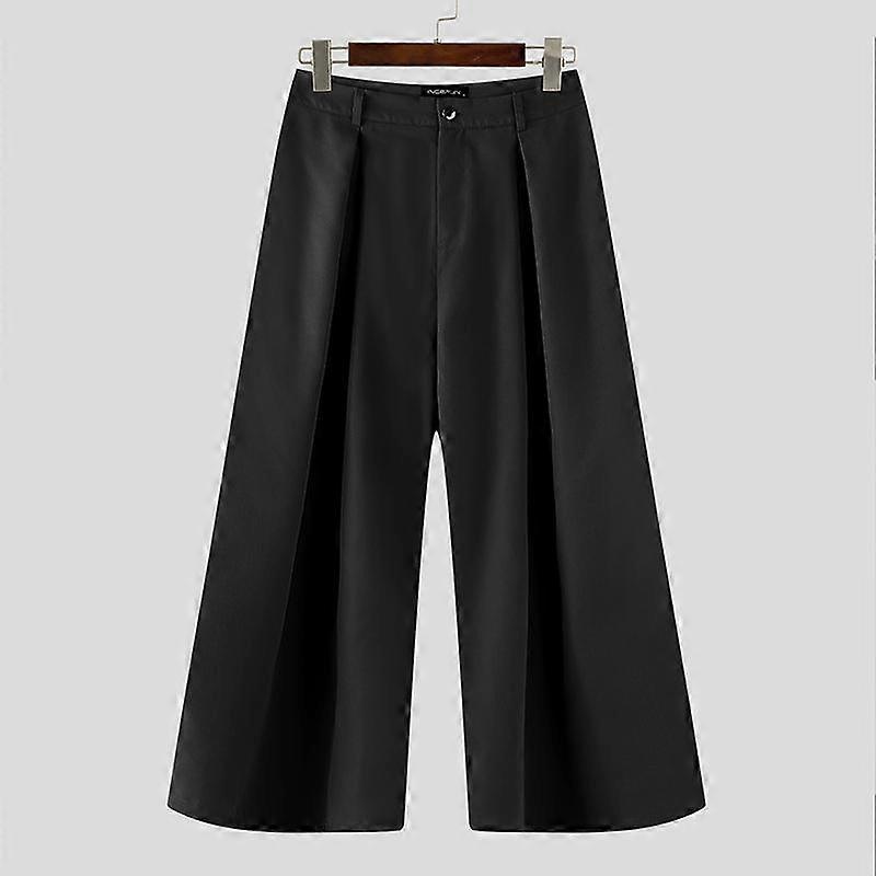 INCERUN Men Zip-up Waist Straight Pants Long Suits Trousers