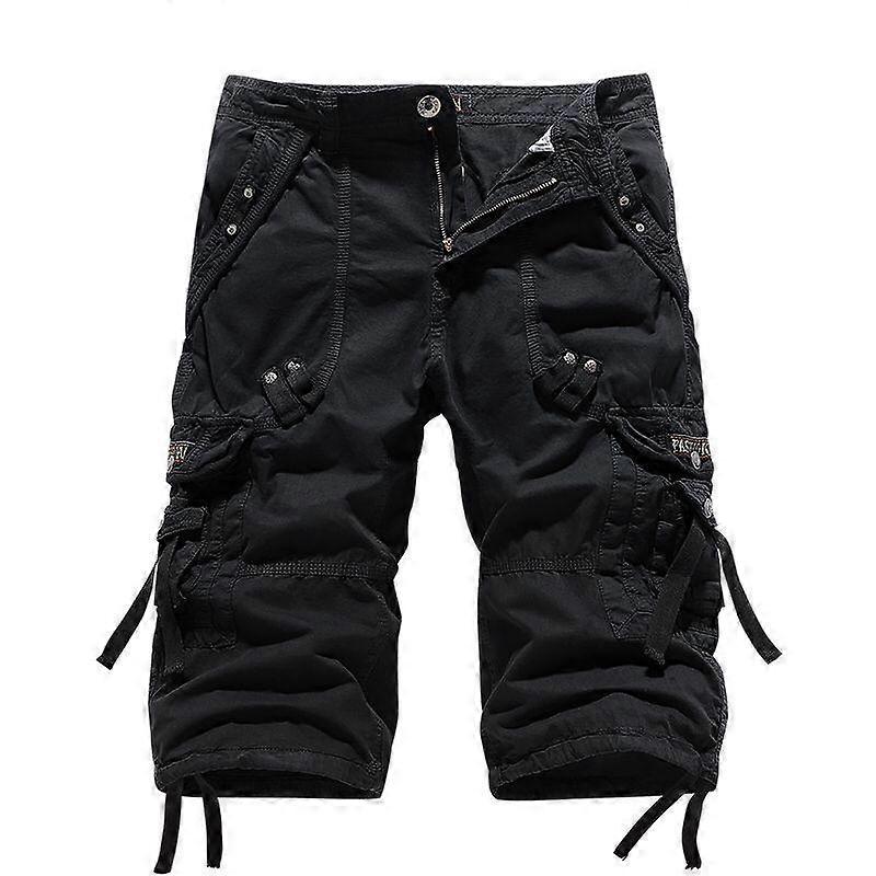 Fashion Summer Mens Casual Cargo Short Pants Loose Fit Loose Pocket Below Knee Capri Cargo Trousers Cotton Knee Length Trouser Soft No Belt
