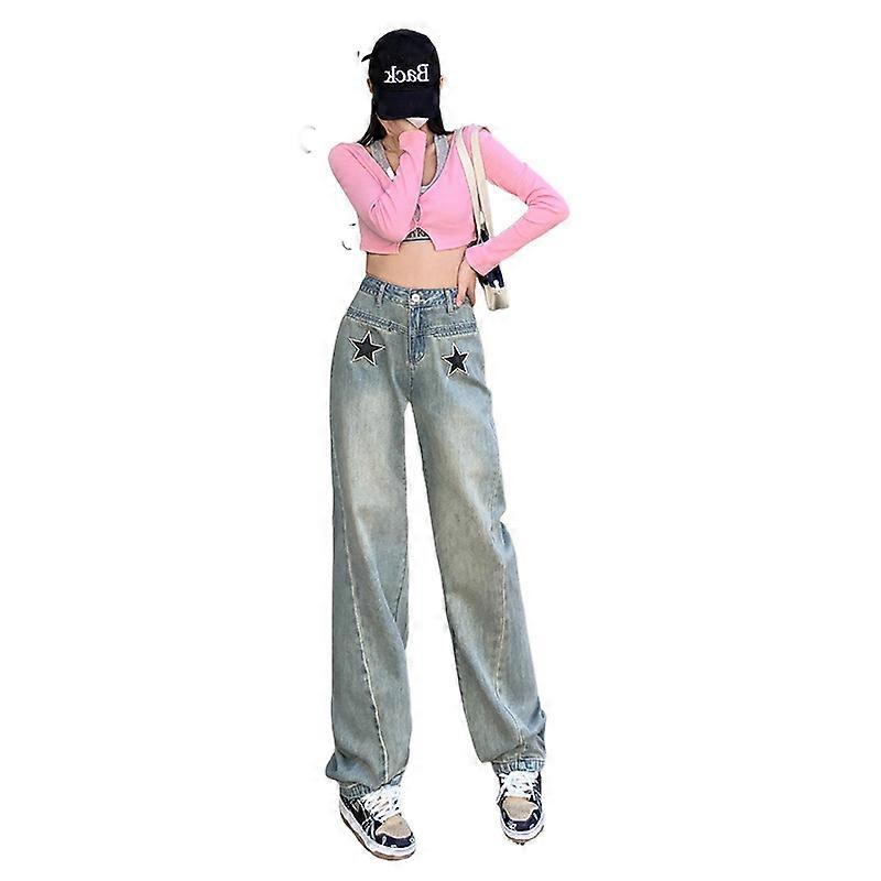 Straight leg jeans for women in summer loose fitting wide leg slimming versatile pants with retro trend straight leg pants Y2K