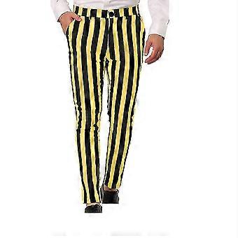 Calças sociais às riscas para homem com corte de alfaiataria e bolsos práticos