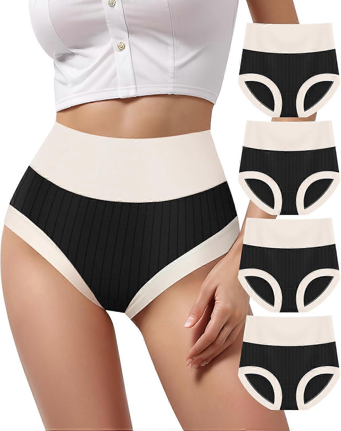 Women's High Waisted Underwear Cotton Seamless No Show Panties Lightweight Full Coverage Soft Briefs 4 Pack