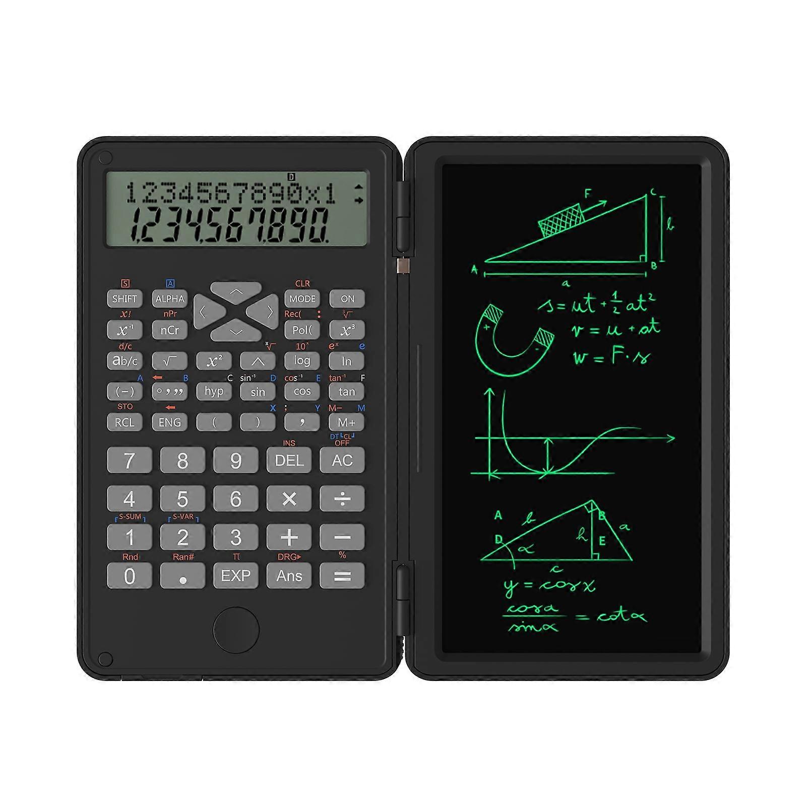 Pinnaco Scientific Calculator with Erasable Writing Board, 240 Functions, 2 Line LCD Display, Foldable - School Supplies for Students