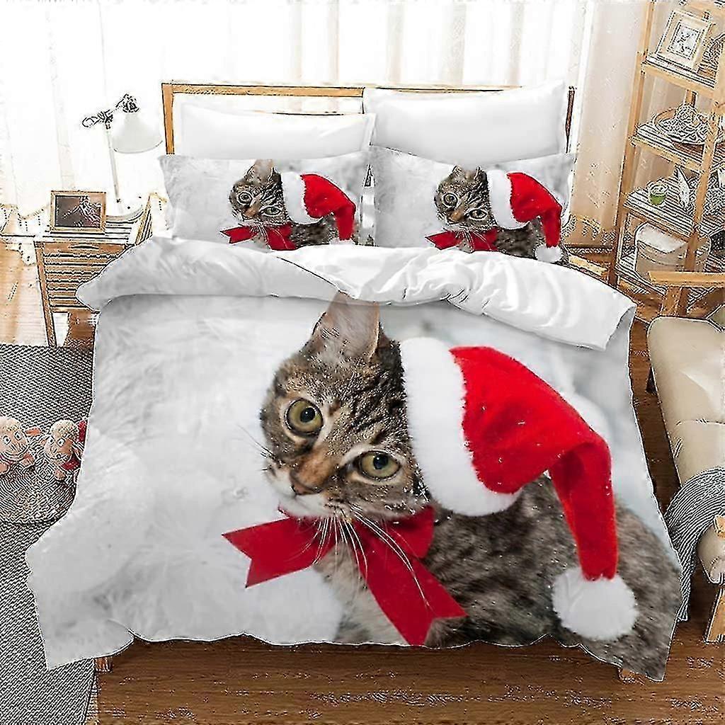Bedding Double Bed Set White Winter Christmas Cat Double Duvet Covers Set With Zipper Closure - Include 1 Duvet Cover 200x200 Cm And 2 Pillowcases 50x
