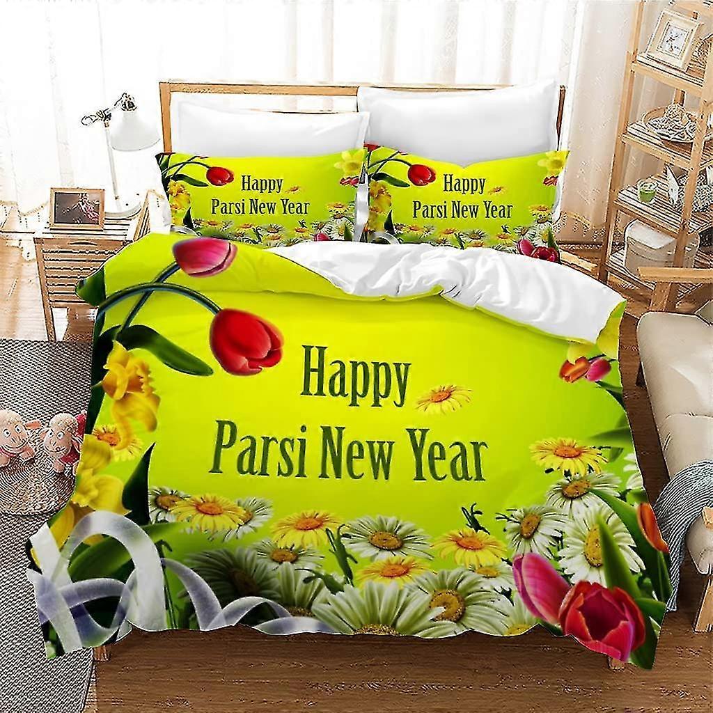Bedding Double Bed Set Green New Year Gift Double Duvet Covers Set With Zipper Closure - Include 1 Duvet Cover 200x200 Cm And 2 Pillowcases 50x75cm, S