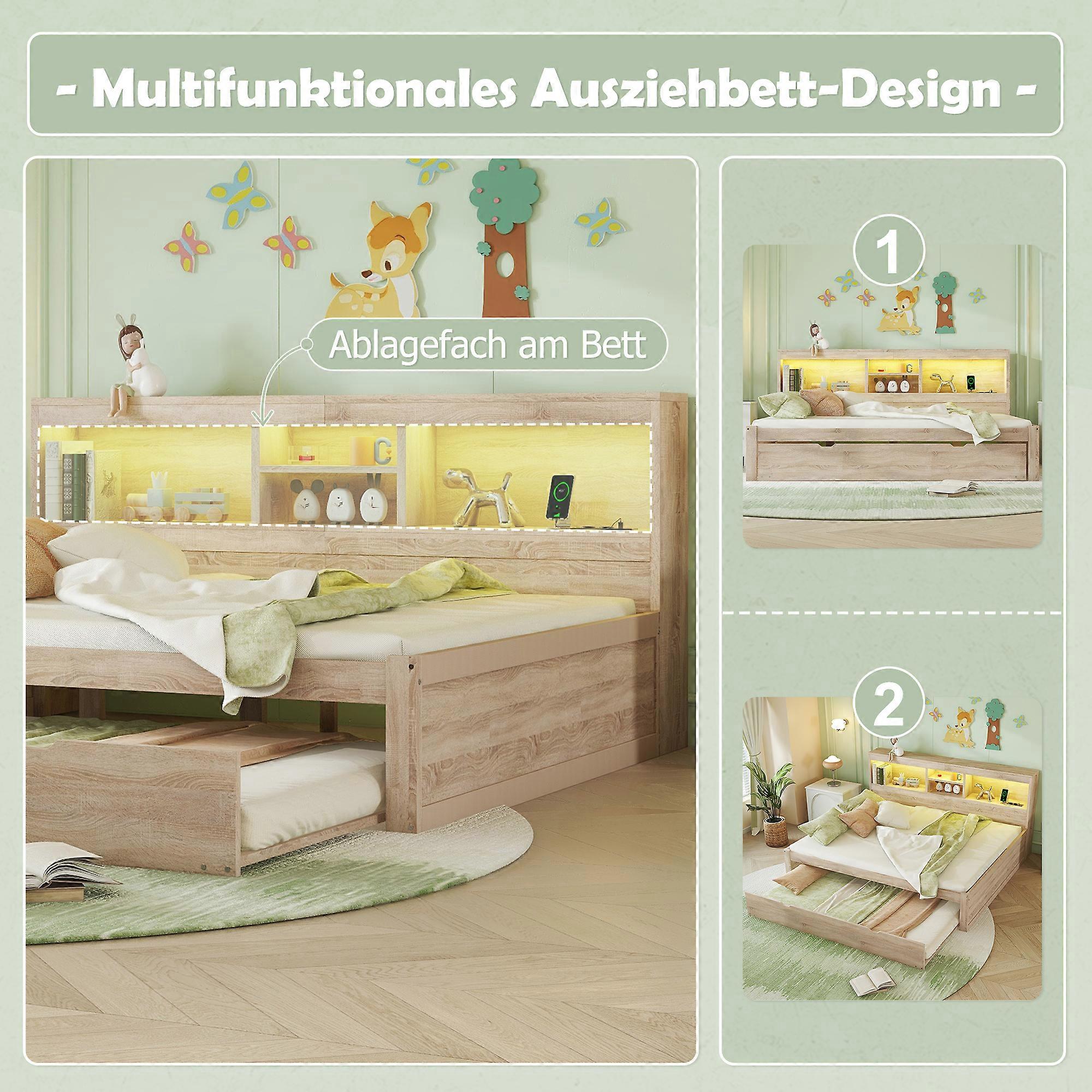 Natural Daybed 140x200cm LED Light Storage USB Power Outlet No Mattress