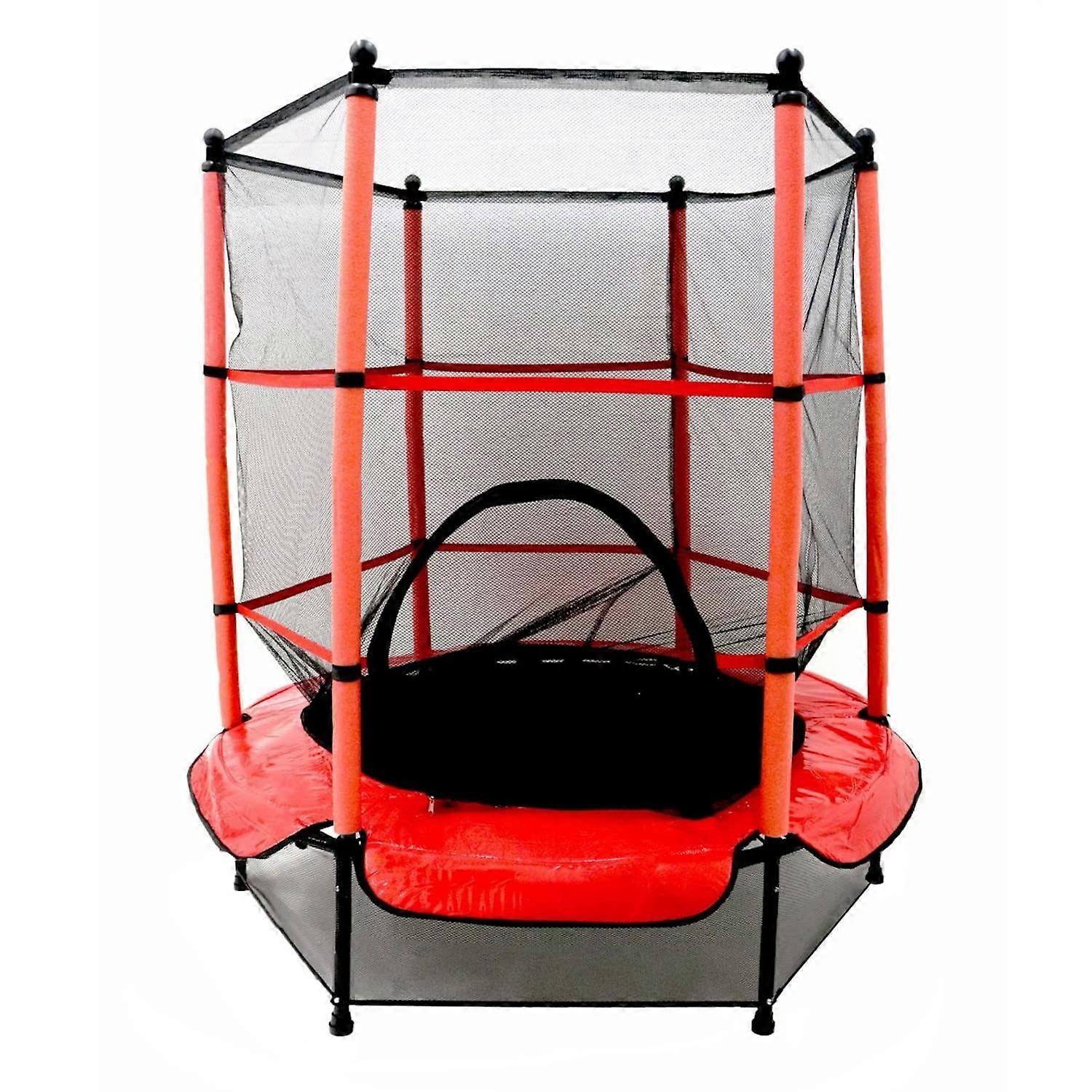 55-Inch Trampoline With Safety Net Enclosure And Red Cover For Outdoor Garden Use