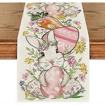 Table Runner with Rabbit, Eggs and Flowers for Easter, Seasonal Spring Kitchen Table Decoration 33x183 cm