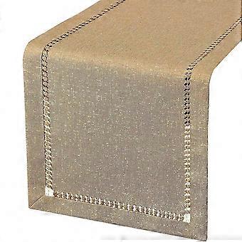 Caminho de Mesa de Fio Prateado com Bainha à Mão - Bege Escuro 12x72 Lenço de Jantar