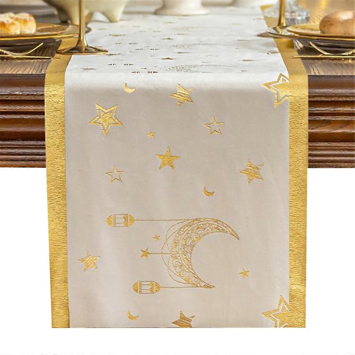 Velvet table runner for Eid Al-Fitr with moon and stars Home B
