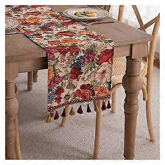 Table Runner Made of Woven Cotton and Linen with Tassels, White, 33x180cm