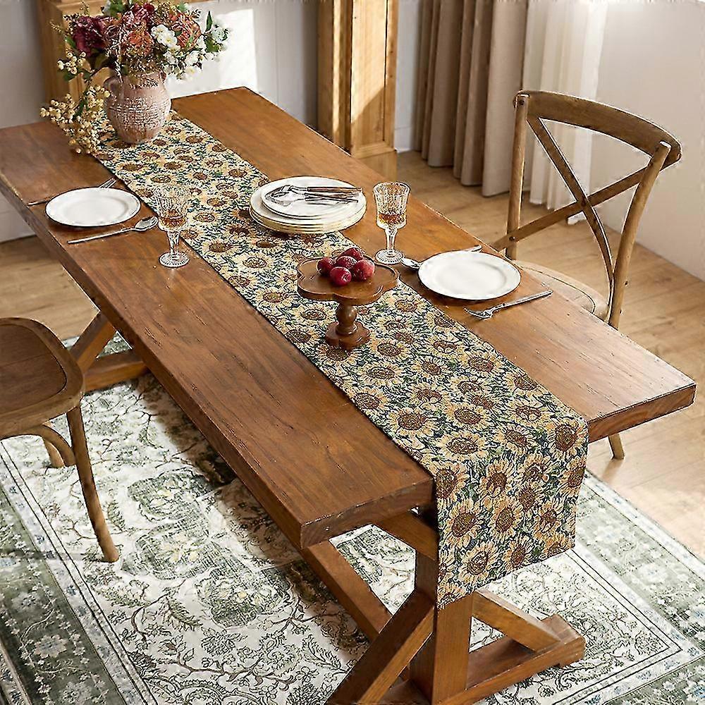 European Table Runner for a Sunflower-Themed Cabinet Cover - Enhance Your Kitchen or Dining Room with a European Design and Natural Touch.