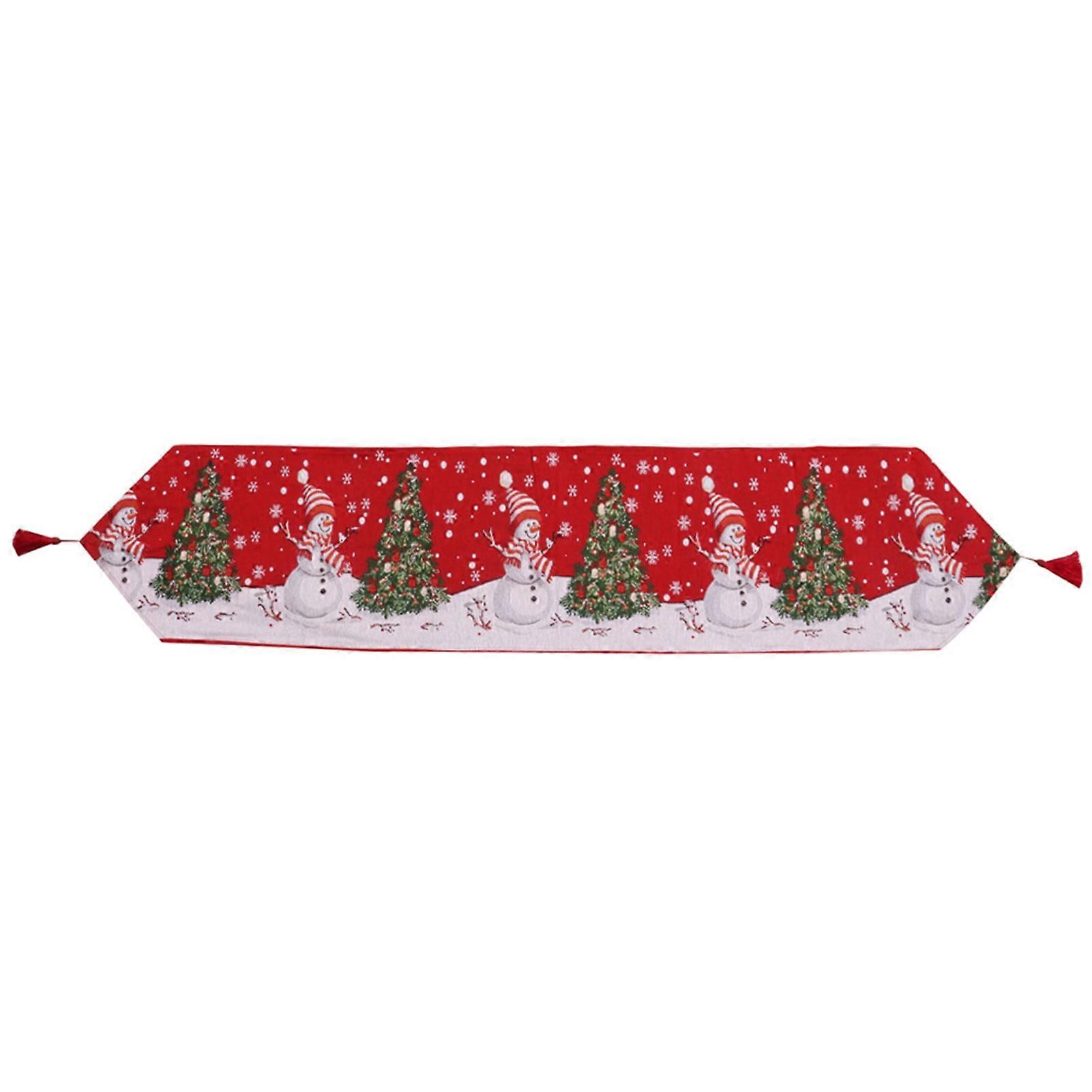 180cm Christmas Table Runner, Colorful Printed, Washable, Easy-to-Clean, Tassel Tablecloth, Cartoon Snowman Design, Protective Tablecloth