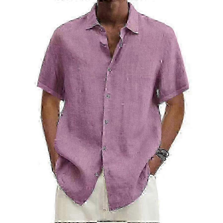 Men's Button-Up Lapel Shirt in Solid Cotton and Linen Blend