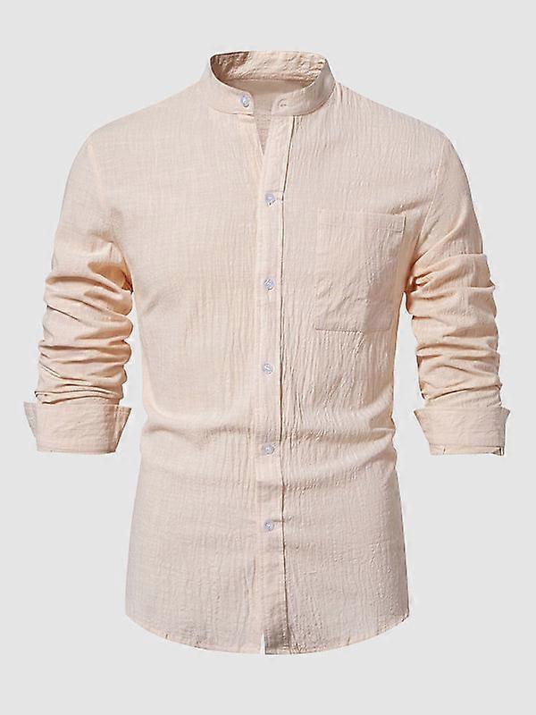 Men's cotton-linen stand collar casual long-sleeved shirt