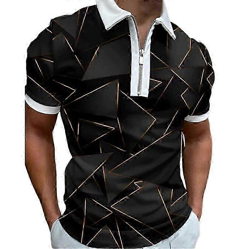 25-26 Casual Lapel T-shirt Young Men's Fashion Zipper T-shirt Short Sleeve T-shirt Men's 3D Blue Stripe Print T Shirt