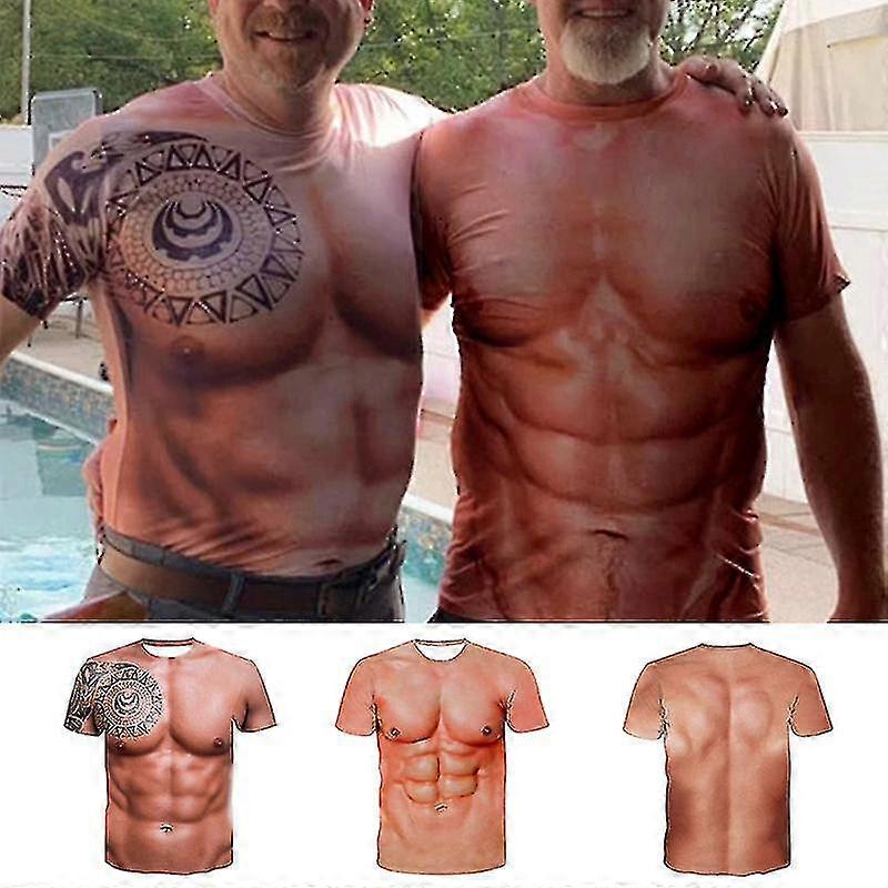 Men's Short Sleeve 3D Digital Printing T-shirt with Muscle Tattoo Design