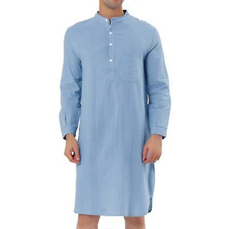 Luxora Men's Nightshirt Cotton Sleep Shirt Scoop-neck Side Split Knee Gown With Pocket