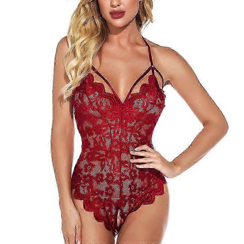 Women's Nightgown Lace Crotchless Bodysuit See Through Open Back Lingerie