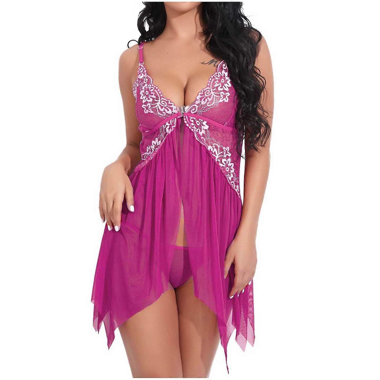 Jacenvly Women's Purple Lace V-Neck Nightgown, Front Closure Mesh Sleepwear, Valentine's Day Gift (Compatible with)