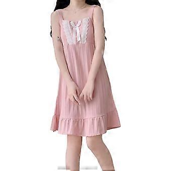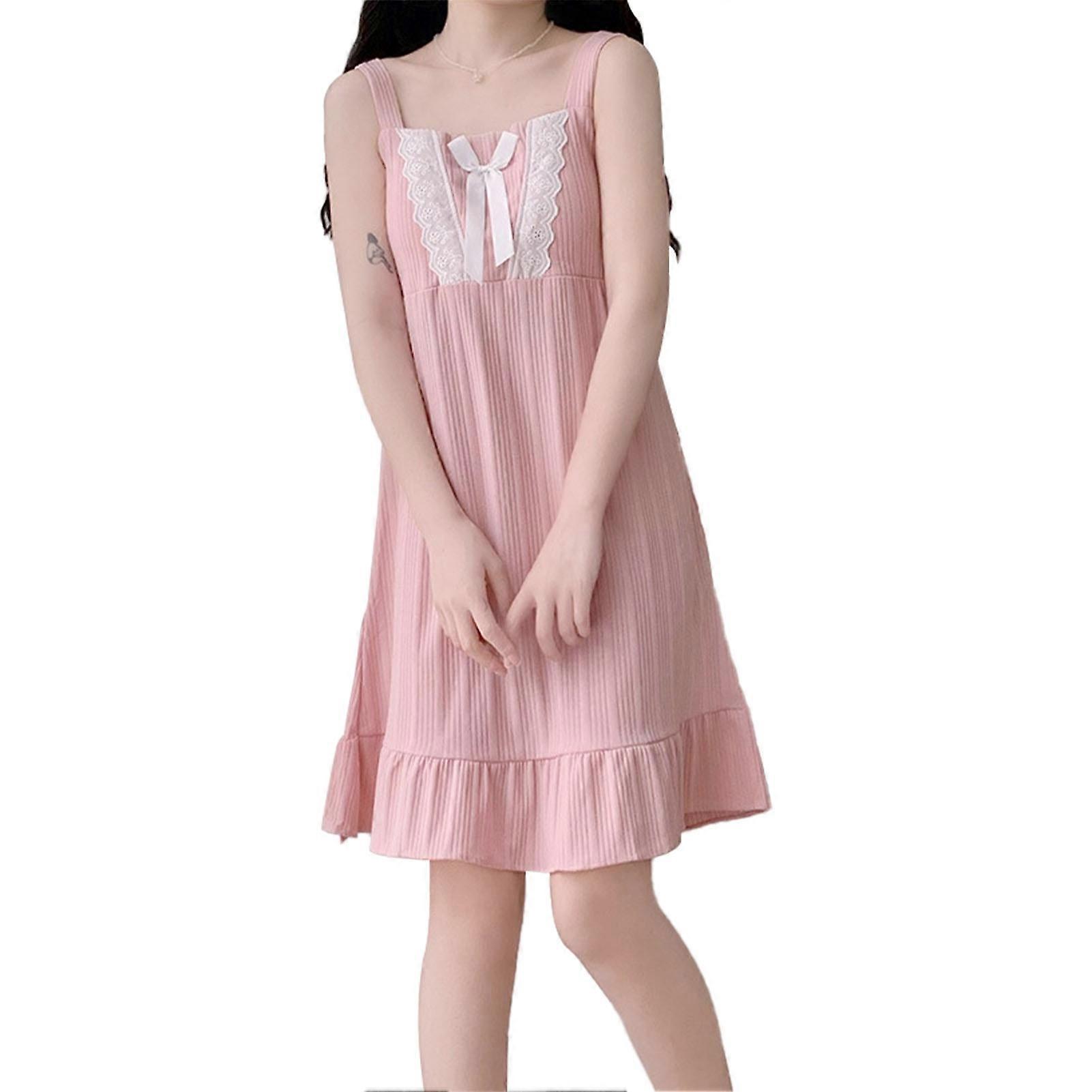 Sleeveless Nightgown with Soft Chest Pad Ruffle Hem Cute Suspender Nightdress for Home Travel