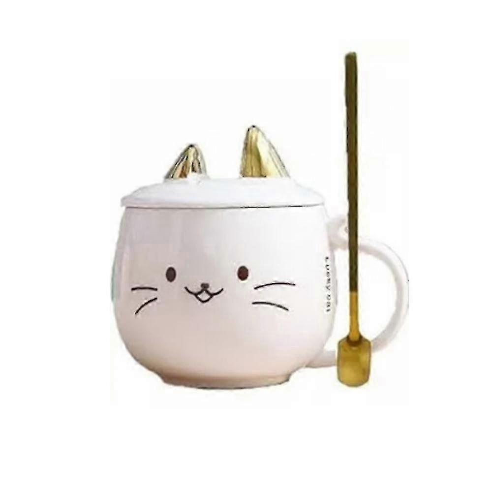 Pink Cat Mug,Kitty Mug,Cat Coffee Mug with Ears,Cute Cat Mug with Lid and Spoon