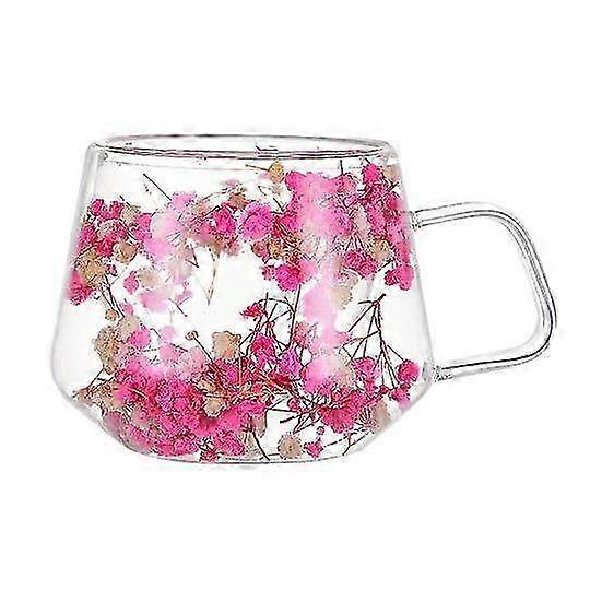 200ML Double Wall Insulated Clear Glass Mug with Handle - Aesthetic Dehydrated Flower Design Heat Preserving Tumbler for Coffee & Tea