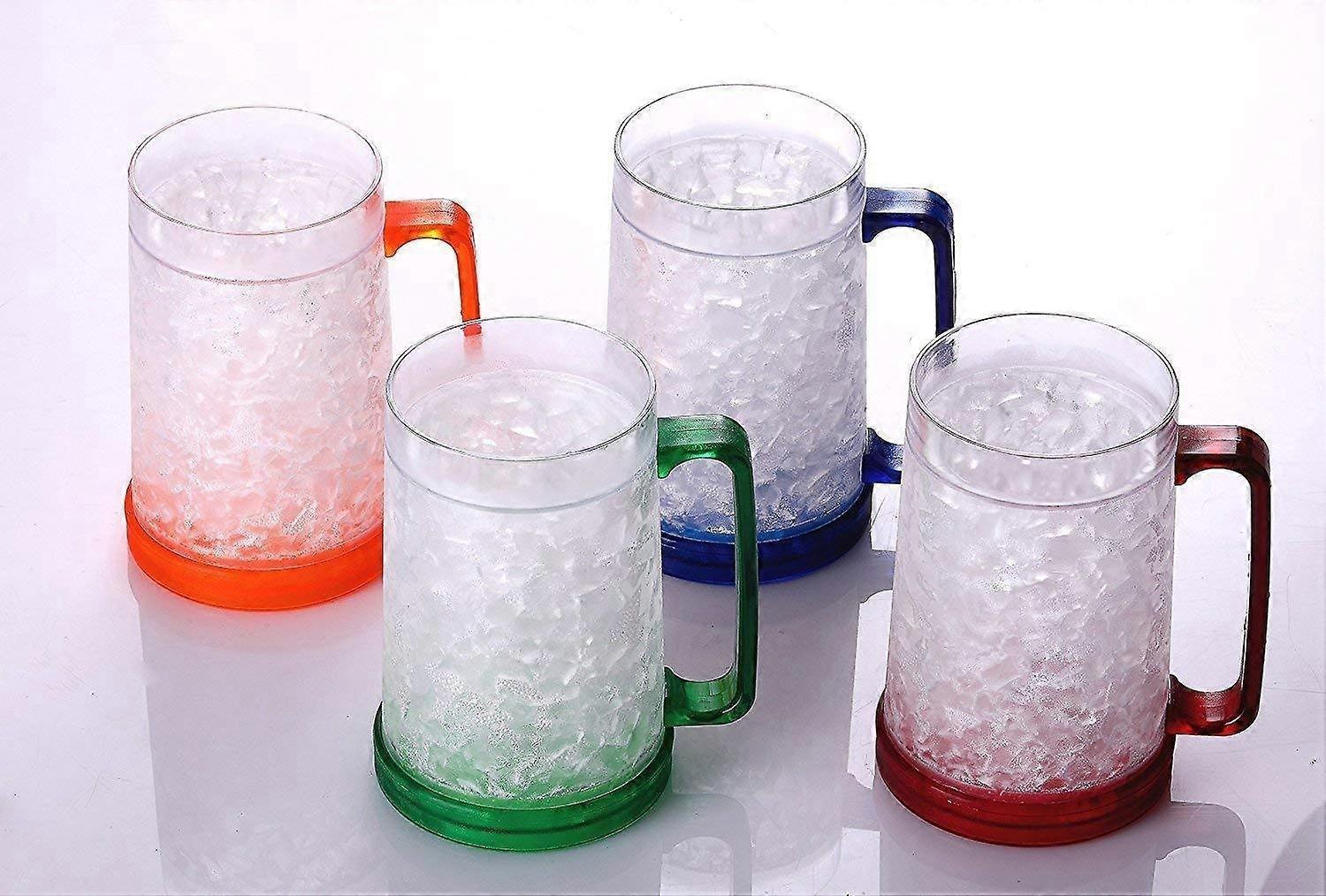 Double Wall Gel Frosty Freezer Ice Mugs 16oz Set of 4 in Blue, Red, Orange, Green - Clear Insulated Drinkware