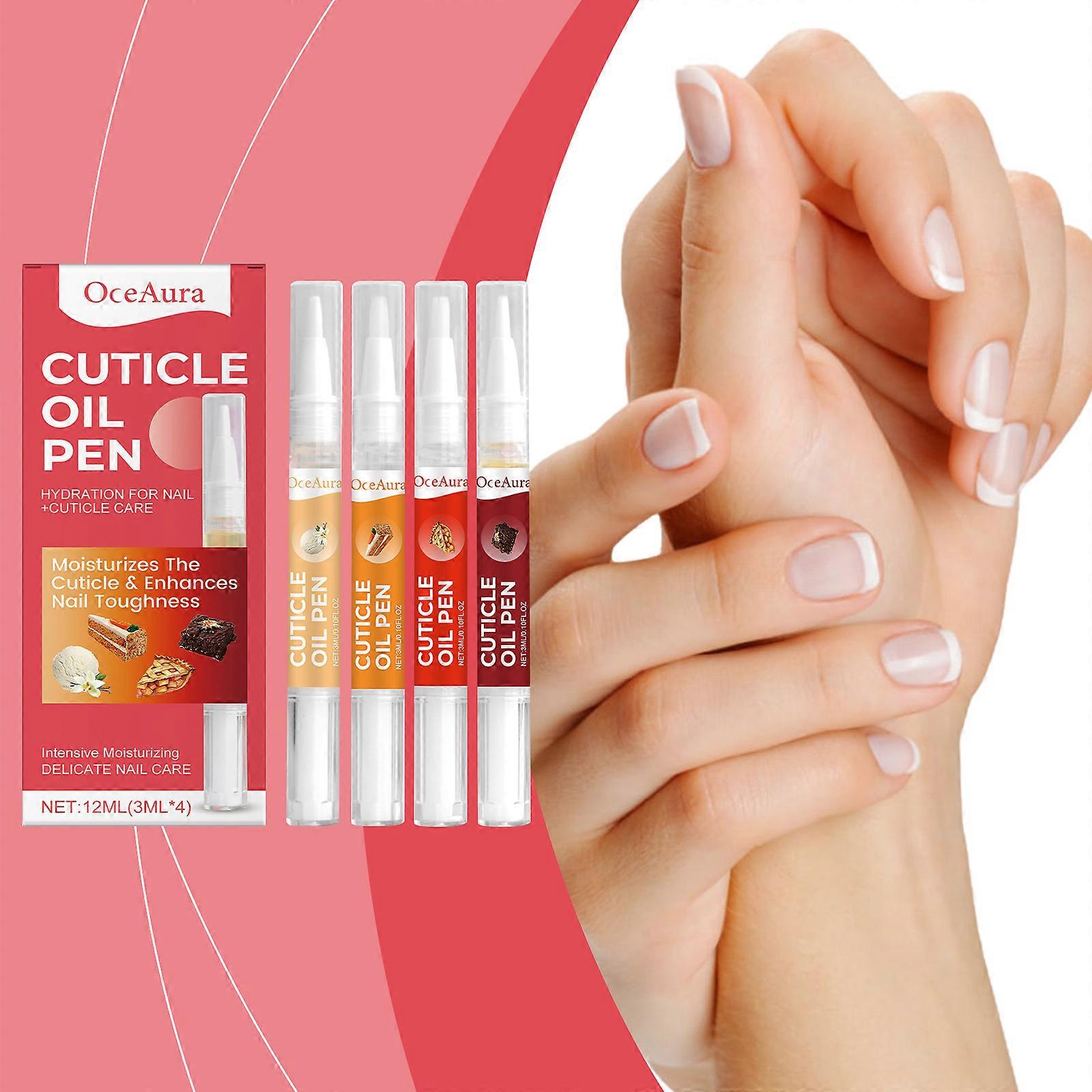 Cuticle Oil Pen for Nails, 4Pcs Cuticle Oil Pens with Dessert Scents, Nail Strengthener and Growth Nail Oil Pen with Almond Oil, Jojoba Oil