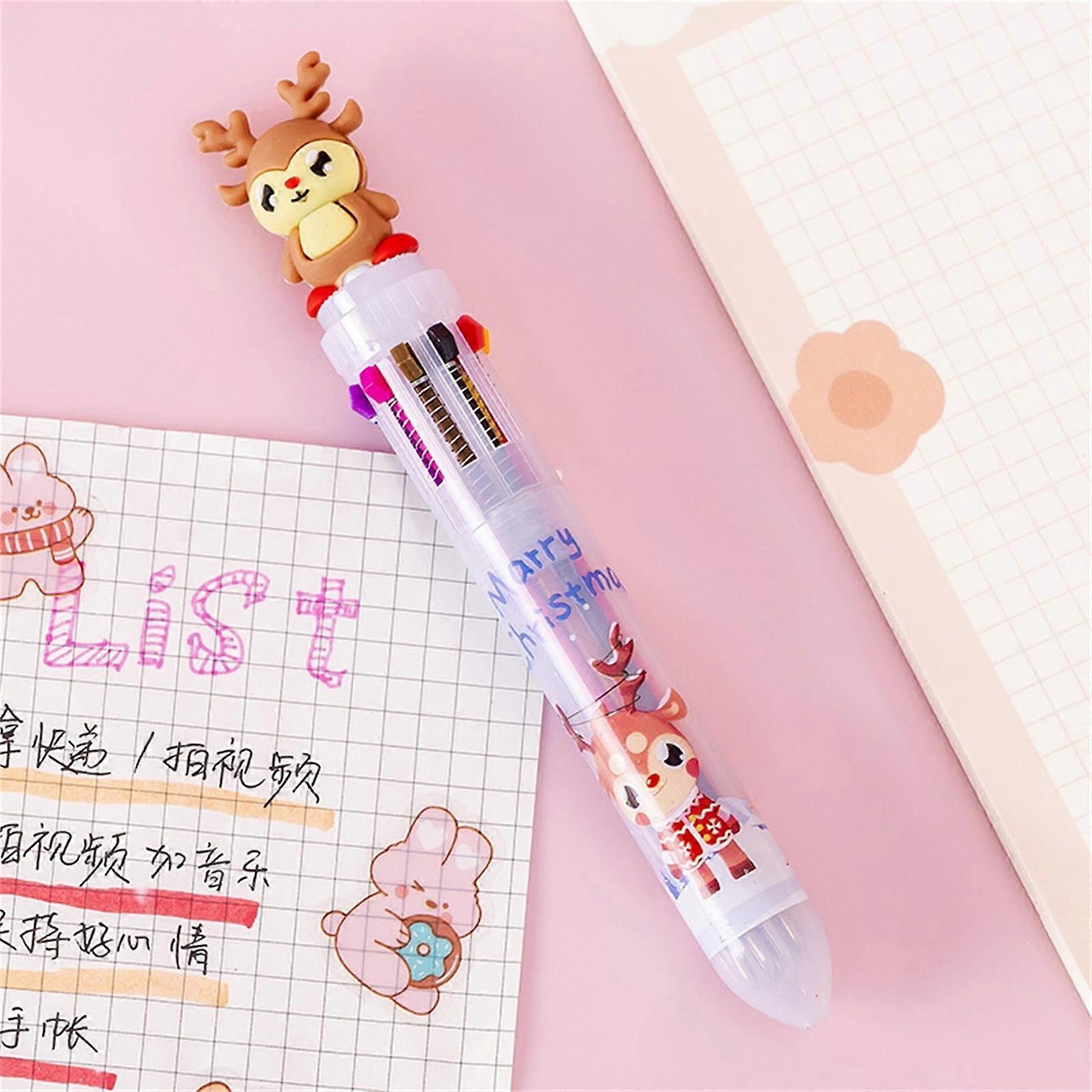 YiFudd 10 Color Christmas Ballpoint Pen Push Type Color Multifunction Marker 10 In 1 Multicolor Pen Christmas Gift 2ml