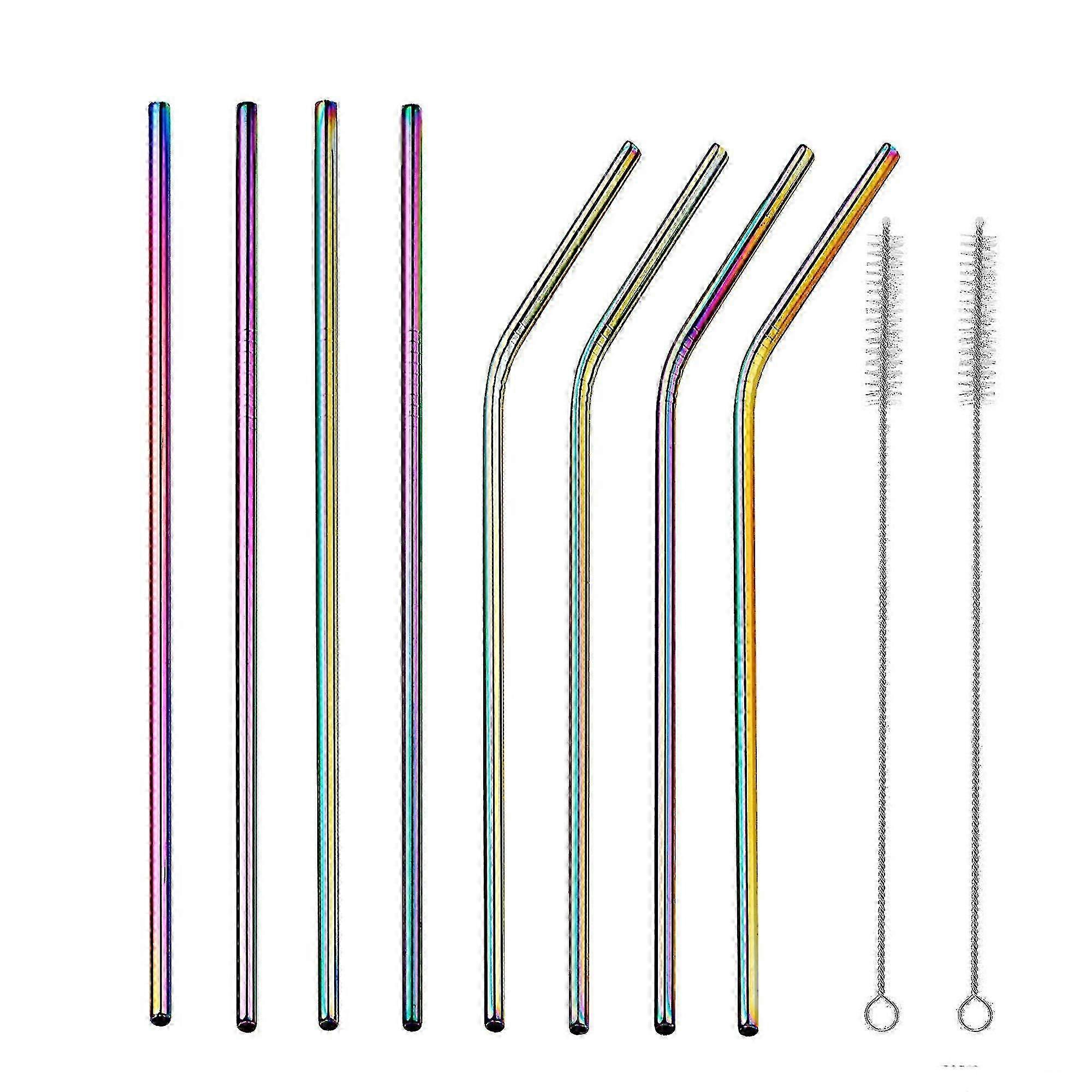 Stainless Steel Reusable Straws 8-Pack with 2 Brushes, Eco-Friendly 8.5 Inch Drinking Straws