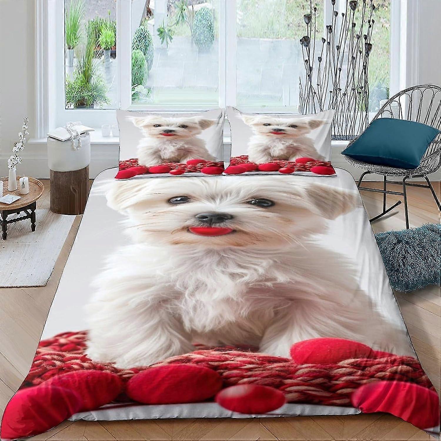 Maltese Dog 3D Print Northern Europe Quilt Cover for Kids Soft Microfiber Bedding Set with Zipper Closure