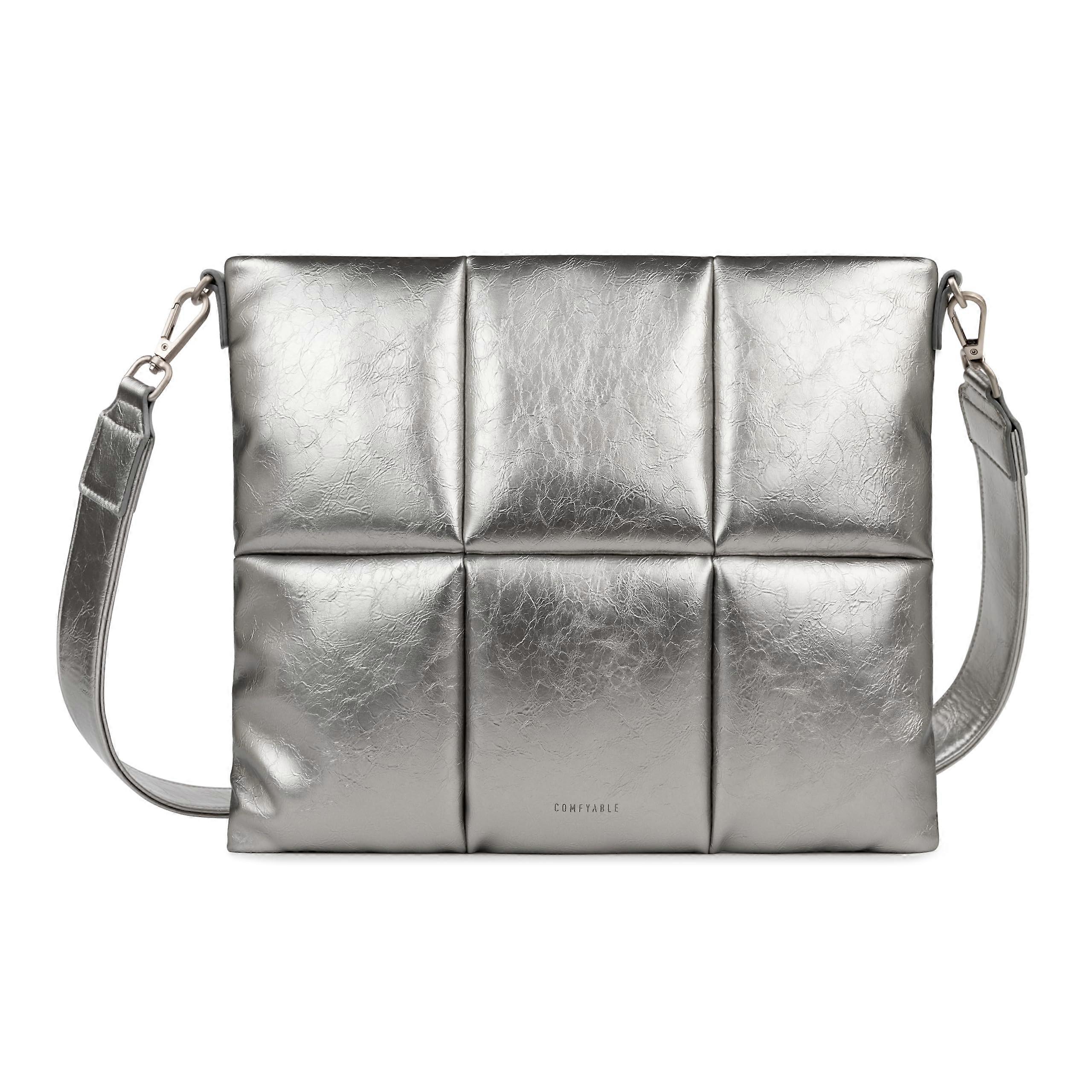 Puffy Laptop Sleeve with Crossbody Strap for 1314 Inch Laptop Silver PU Leather