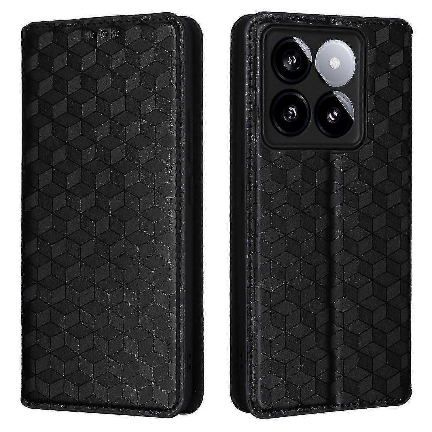 Leather Wallet Case for 14T Pro with Rhombus Emed Design and Phone Cover 26-27s