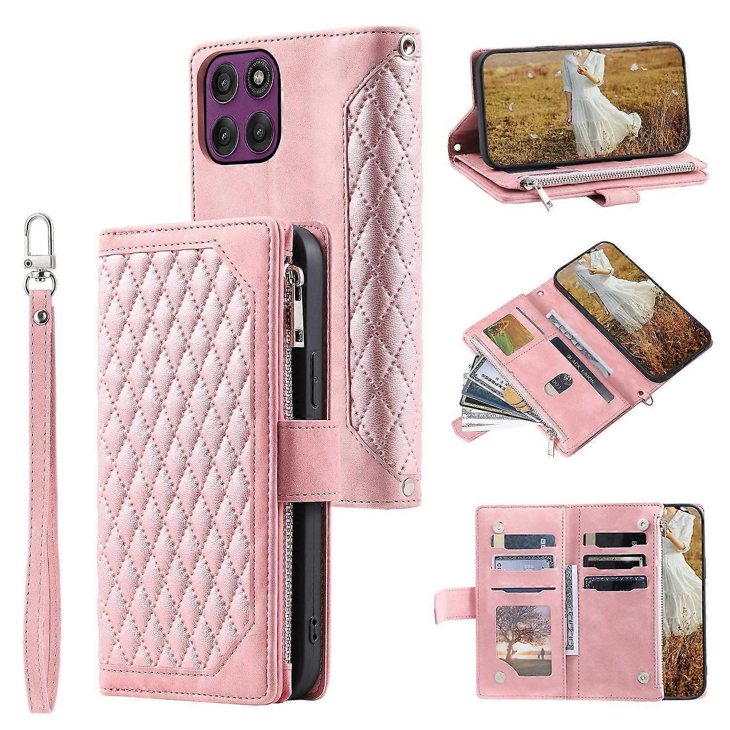 For Motorola Edge 70 5G Wallet Case Rhombus Stitching Line PU Leather Phone Cover with Wrist Strap