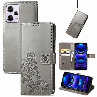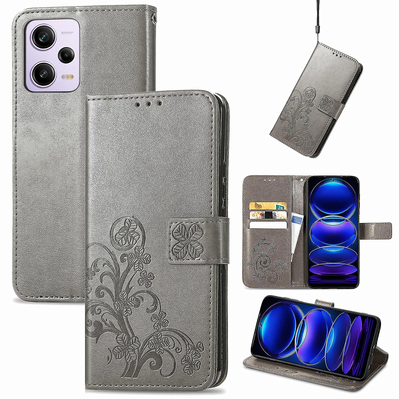 Case compatible with Xiaomi Redmi Note 12 Pro Plus 5g Cover Wallet Clover Embossed Protective Leather Phone Case Magnetic - Grey