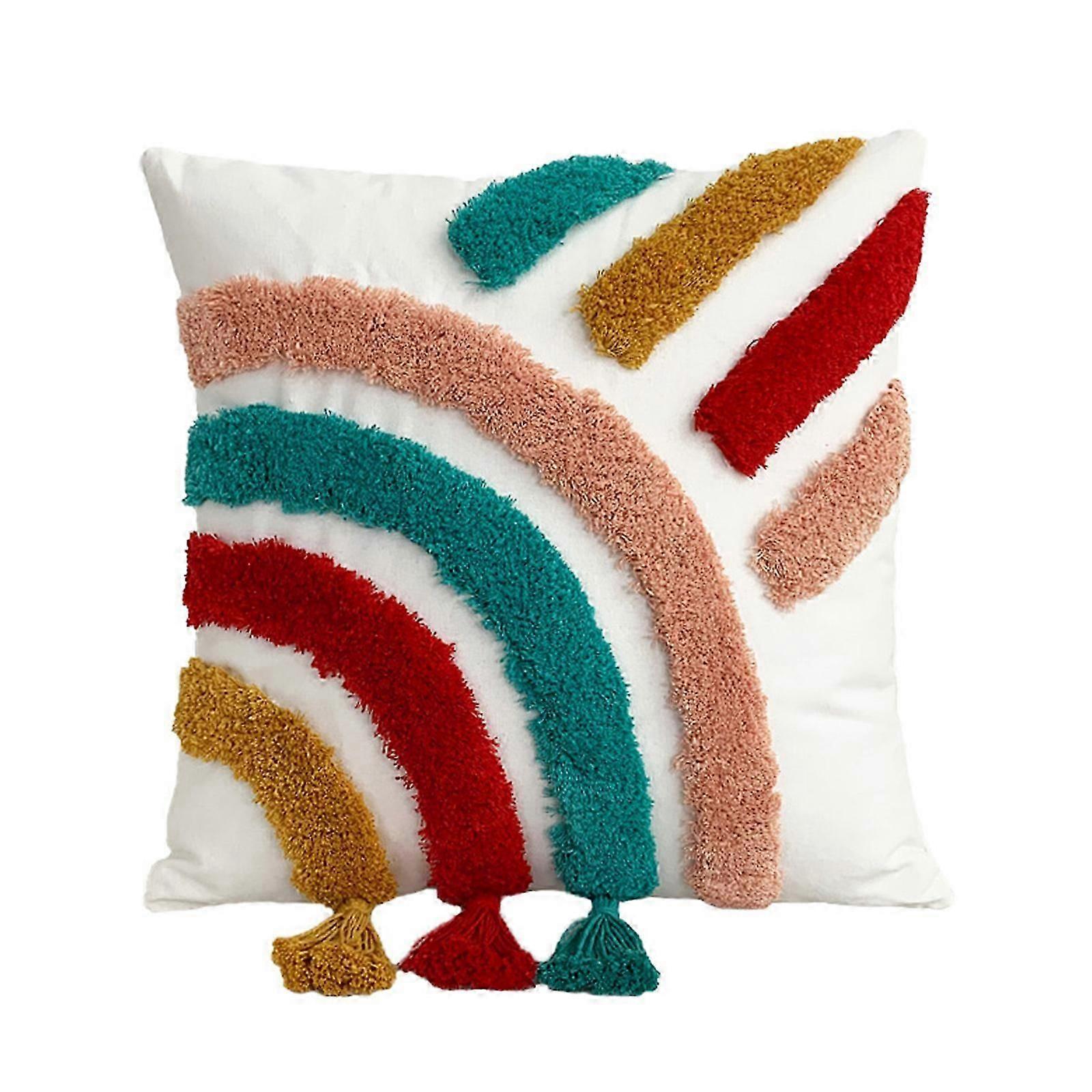 Bohemian Rainbow Throw Pillow Cover Tufted Tassel Pillowcases for Farmhouse