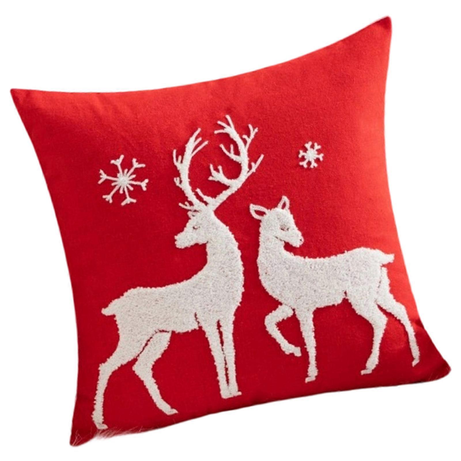 Festives Santa Embroidered Pillow Case Christmas Home Decors Soft Canvas Fabric Zippered Closure Holiday Cushion Cover F