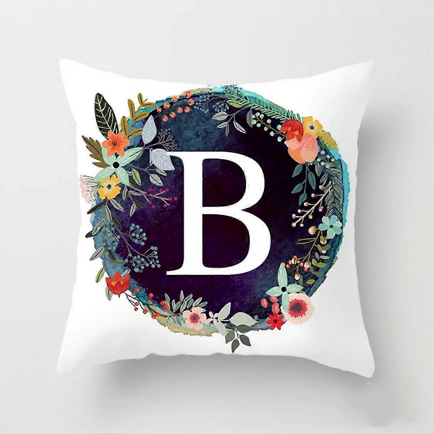 2025 Latest Model English Alphabet Throw Pillow Cover Floral 18x18 Inch Square