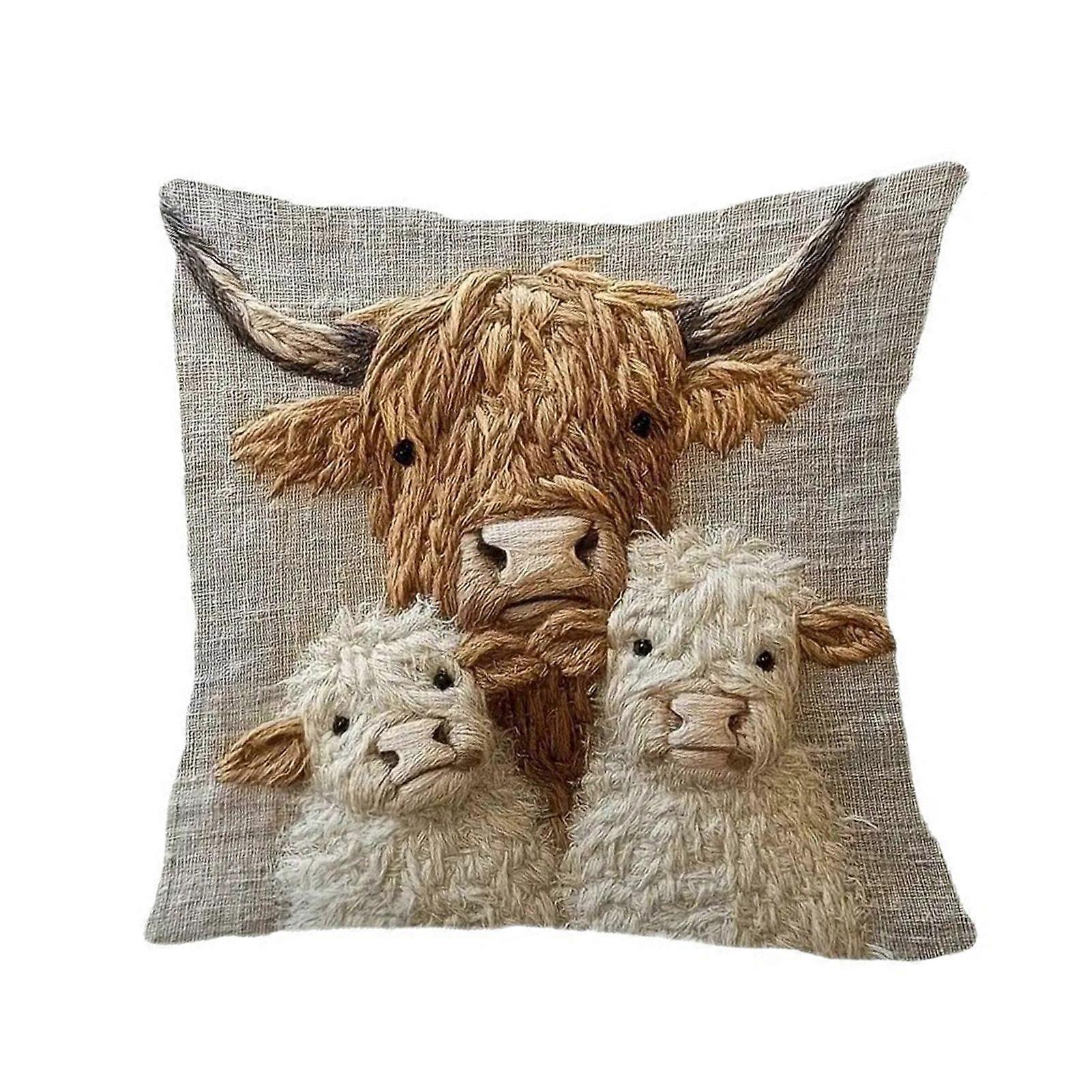 Highland Cow Pillow Cover Cute Cow Pattern Pillowcase with Hidden Zipper Home Decor Throw Pillow Case for Farmhouse Living Room Bedroom Sofa