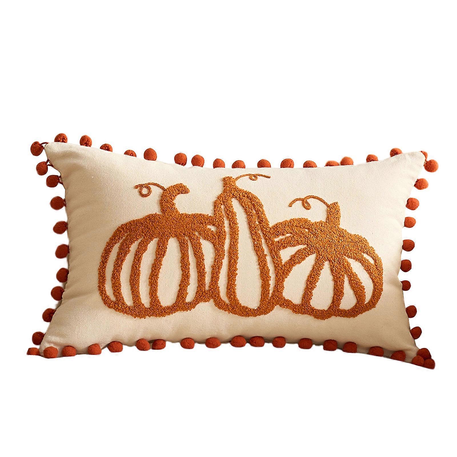 Zippers Closure Fall Themed Pillow Case With Pumpkin Maple Leaf Embroidered Couch Decoration For Thanksgiving Season Multicolor