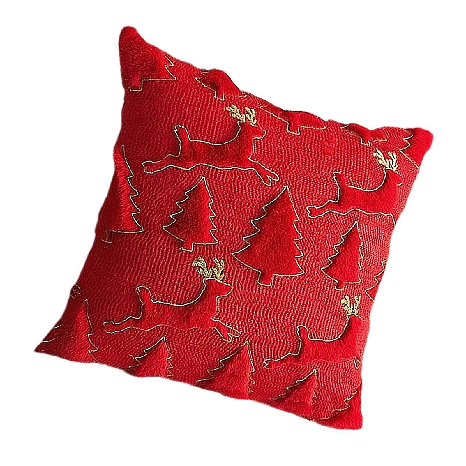 Christmas Celebration Pillow Cover With Invisible Closure Simple Cleaning Sturdy for Living Room Bedroom Red