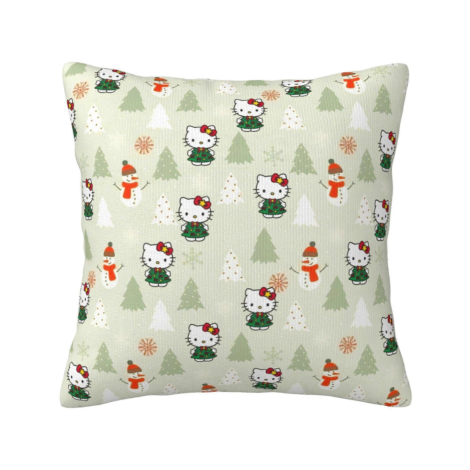 Hello Kitty Christmas Pattern Double Sided Plush Throw Pillow Cover Soft Square Cushion Cover for Sofa Bed Bedroom Living Room Decoration 18" x 18"