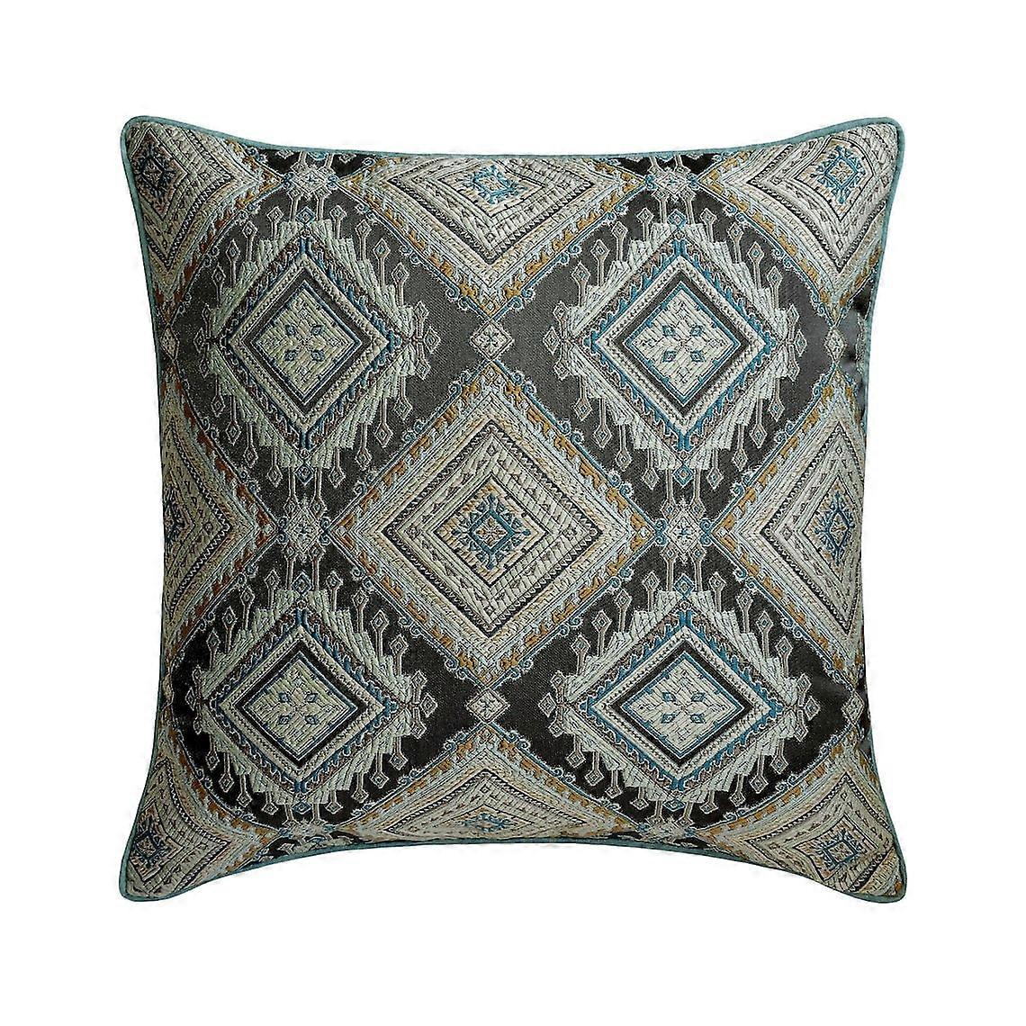 HomeCentric Sofa Cushion Cover, Blue, 2 Pack, 14x14 inch, Jacquard Silk Aztec Pattern, Compatible with Easter Decor