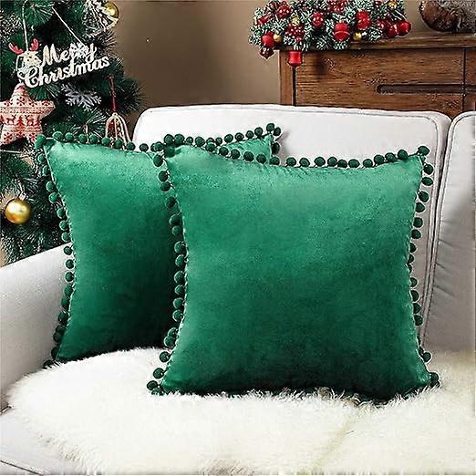 Velvet Cushion Cover 45 x 45 cm Set of 2 Square Pillowcase with Pom Poms Decorative Throw Pillow Cases for Sofa Home