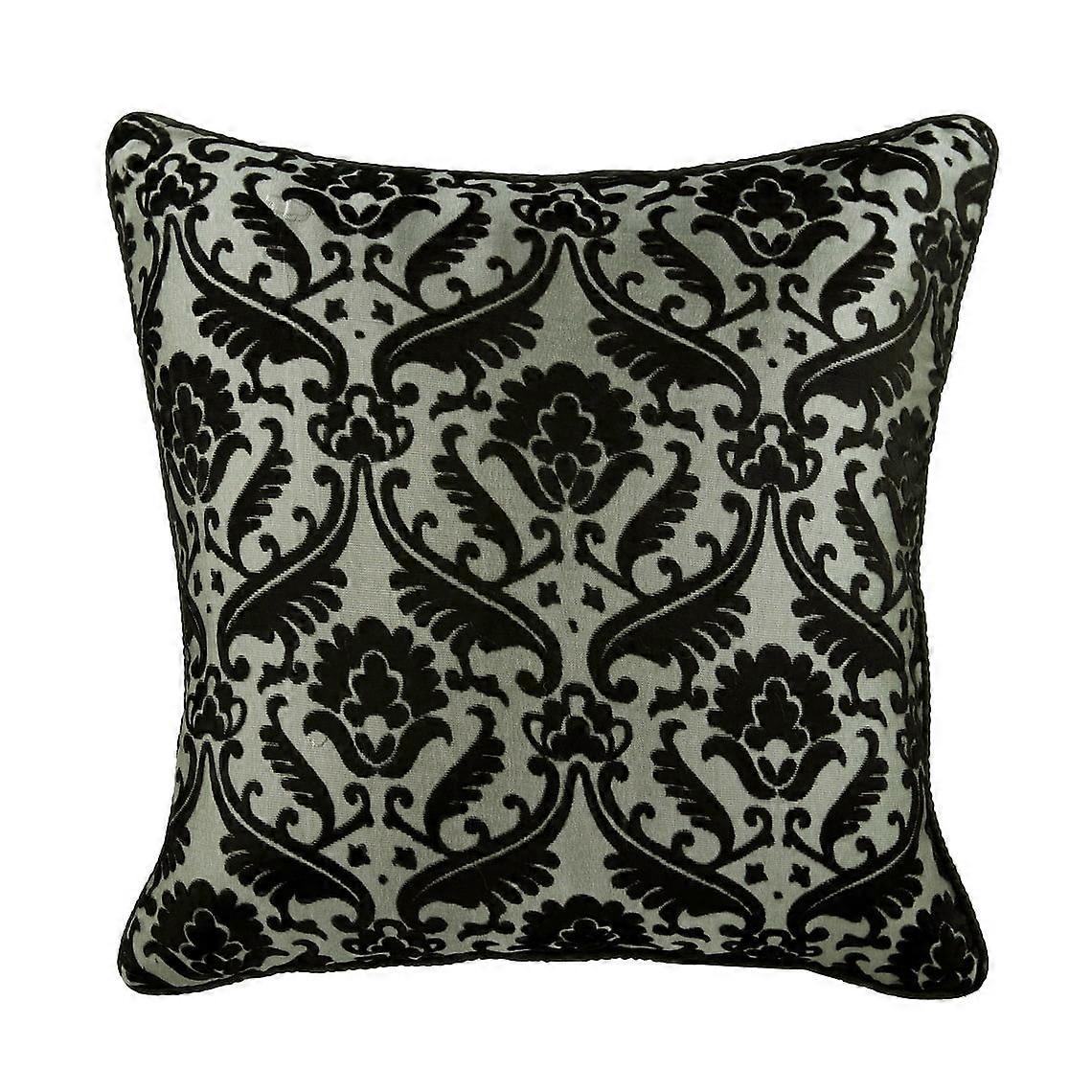 26x26 inch Burnout Velvet Cushion Cover, Euro Sham Case Compatible with Damask - Victorian Black & Grey, Sofa Throw Pillow Cover