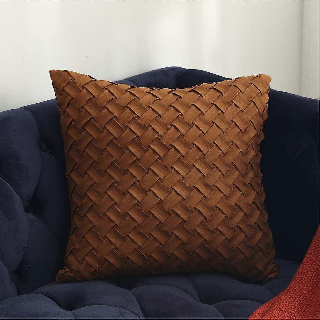 Boho Basket Weave Pattern Decorative Throw Pillow Cover Super Soft Suede Solid
