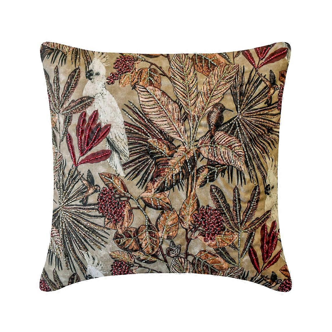 HomeCentric Decorative Throw Pillow Cover 16"x16" Cotton Bird Embroidery Beaded Handmade Printed Floral Cushion for Couch Compatible with Sage