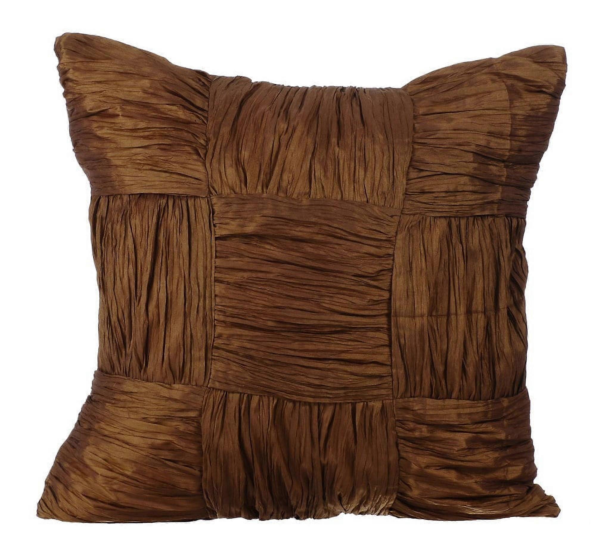 Gold Pillow Cover, 12x12 inch (30x30 cm), Crushed Silk, Checkered Art Silk, Patchwork, Modern - Dreamy Gold